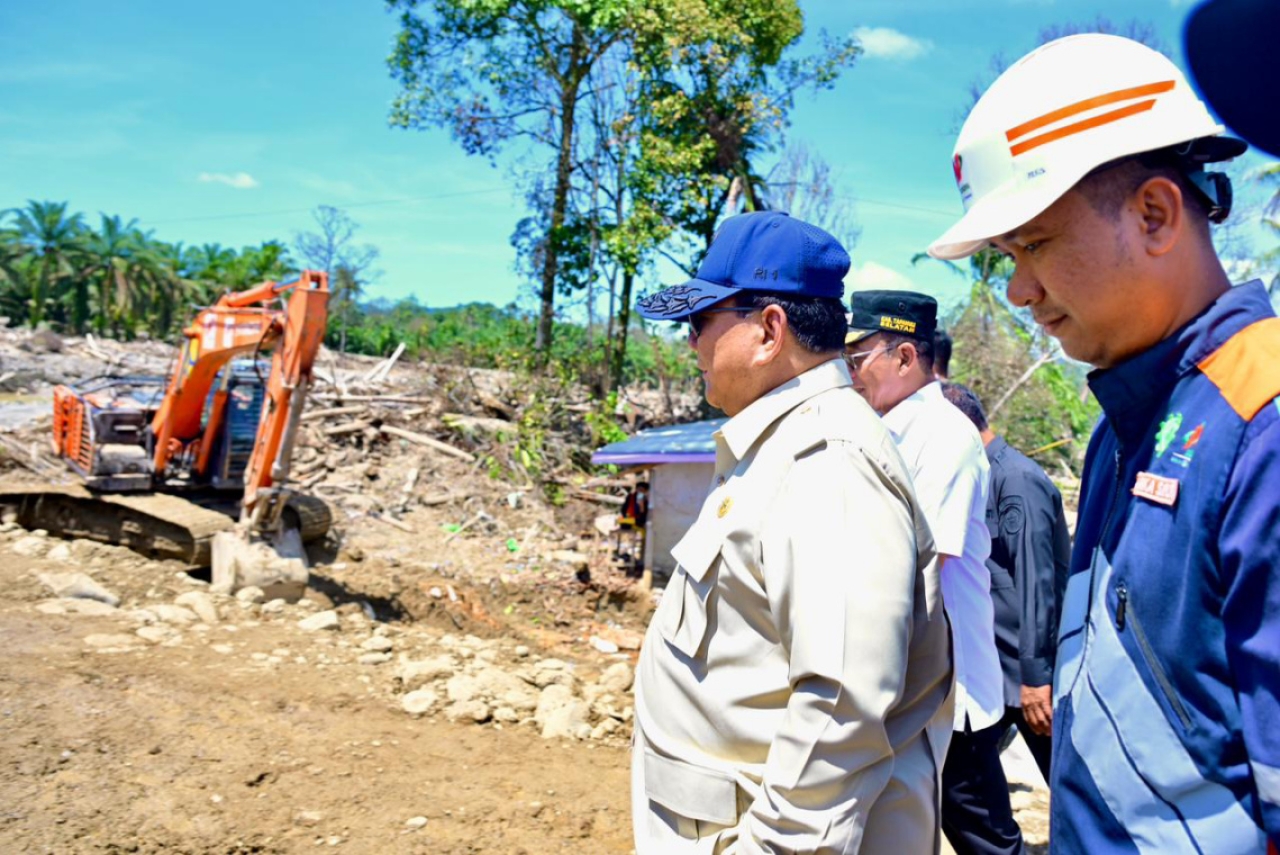 TheIndonesiaTimes - Presiden Republik Indonesia Prabowo Subianto meninjau langsung pembangunan Jembatan Bailey di Sungai Garoga serta Posko Kesehatan Kodam I/Bukit Barisan di Kecamatan Batang Toru, Kabupaten Tapanuli Selatan, Sumatera Utara.
