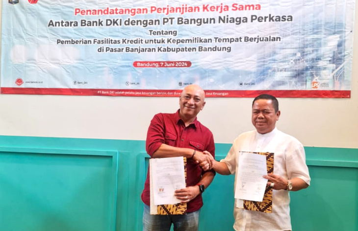 TheIndonesiaTimes, Jakarta - Bank DKI dan PT Bangun Niaga Perkasa telah menjalin kerja sama untuk mempermudah pedagang di Pasar Sehat Banjaran, Kabupaten Bandung, dalam memperoleh dukungan finansial untuk kepemilikan tempat berjualan. Penandatanganan kerja sama ini dilakukan oleh Direktur Ritel dan Syariah Bank DKI, Henky Oktavianus, dan Direktur Utama PT Bangun Niaga Perkasa, Engkus Kusnadi, di Bandung, Jawa Barat pada Jumat (07/06) lalu.